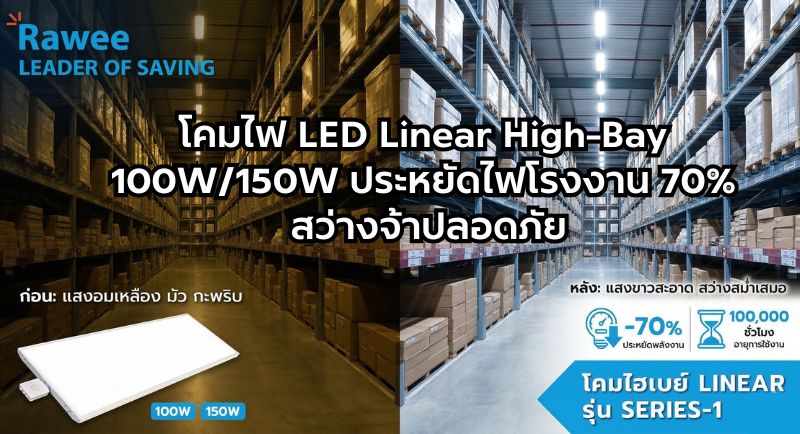 โคมไฟ LED Linear High-Bay 100W/150W ประหยัดไฟโรงงาน 70% สว่างจ้าปลอดภัย | Rawee Lighting