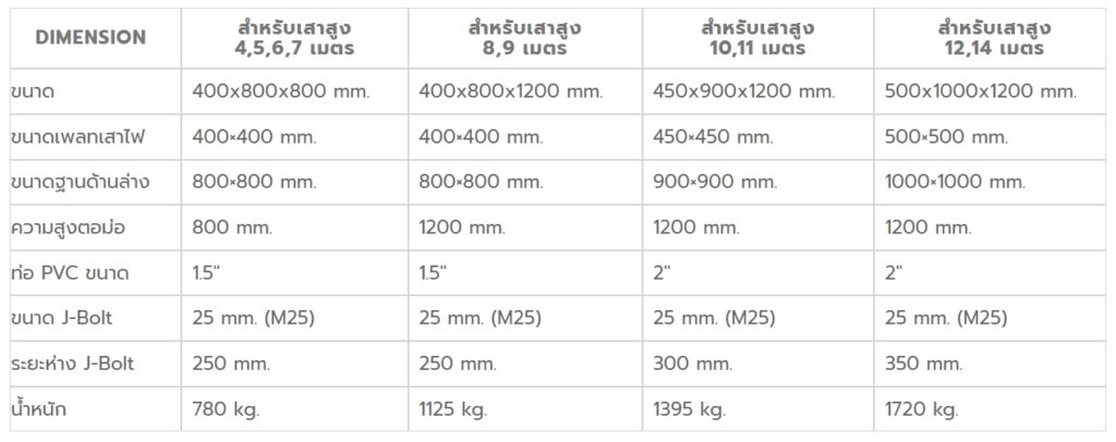 • สำหรับเสาไฟสูง 4 เมตร, 5 เมตร, 6 เมตร, 7 เมตร, 8 เมตร, 9 เมตร, 10 เมตร,